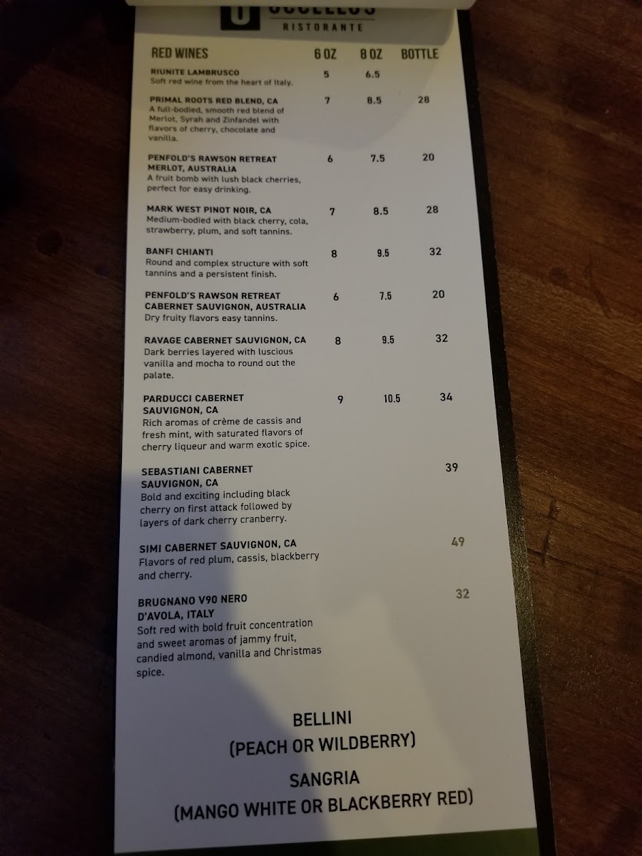 Uccello's - Rockford Menu